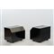Coppia di comodini con struttura in legno laccato nero opaco e nero lucido, piano rettangolare, sul fronte un cassetto inclinato con finitura radica grigio perla ed un cassetto in legno laccato nero lucido.
