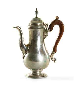 CAFFETTIERA Caffettiera in argento - Londra 1796 Base circolare - manico in legno. Argentiere : Jason Young H. 25 Peso gr. 672 Silver Coffee - London 1796 Circular base - wooden handle. Argentiere: Jason Young H. 25 Weight gr. 672