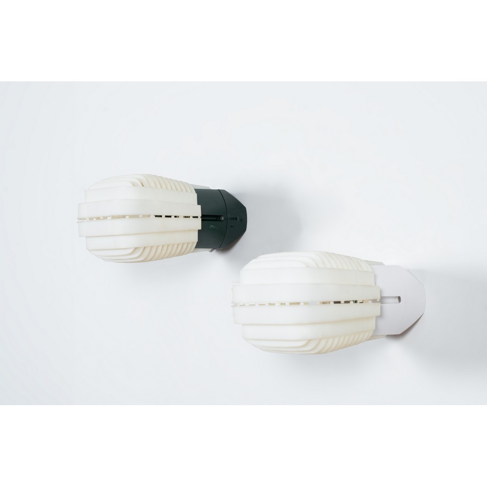 Due lampade da parete ad una luce modello “Joe”, una con struttura in plastica verde e diffusore in plastica bianca, una con struttura e diffusore in plastica bianca. Marchio di produzione.