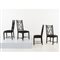 Quattro sedie in legno a canna di bambù verniciate in nero, seduta in tessuto nero con decori bianchi.