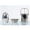 Due contenitori termici in metallo argentato e una ciotola con bordo mosso. Difetti alla placcatura della coppa. Marchio di produzione.