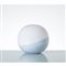 Vaso a sfera in ceramica smaltata bianca e celeste, corpo globulare con forature sulla calotta superiore, bocca circolare piana. Marchio di produzione.
