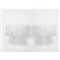 Coppia di lampade da parete a tre luci con struttura in metallo verniciato bianco, diffusore composto da elementi a tronchi in vetro incolore e sovrapposti su due piani.