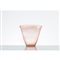Vaso in vetro rosato trattato sulla superficie esterna con acidi, corpo a campana schiacciata, bocca ovalizzata.