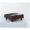 Tavolo da salotto quadrato con struttura in legno impiallacciato teak e legno esotico, piano con quattro incavi porta-oggetti a giorno e tre coperchi amovibili. Lievi usure.