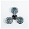 Lampada da soffitto a tre luci con struttura in metallo cromato, diffusori semisferici in cristallo sfaccettato.