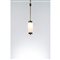 Lampada a sospensione ad una luce, struttura in ottone e metallo verniciato nero, diffusore cilindrico in vetro opalino satinato.