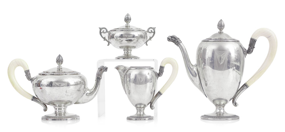ARGENTI RECENTI SERVIZIO DA TE' E CAFFE' IN ARGENTO IN STILE IMPERO, XX...