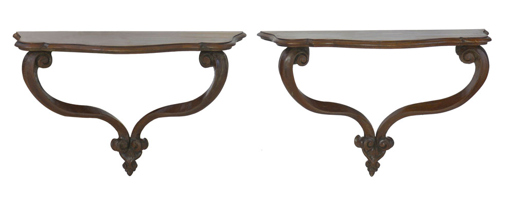 MOBILE DEL XVIII SECOLO COPPIA DI CONSOLE AD APPLIQUE IN NOCE, XVIII SECOLO,...