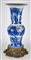 Cina vaso a tromba in porcellana bianca e blu con base in metallo incollata