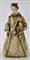 Bambola in materiali vari dipinta in policromia con vestiti in tessuto e pizzi