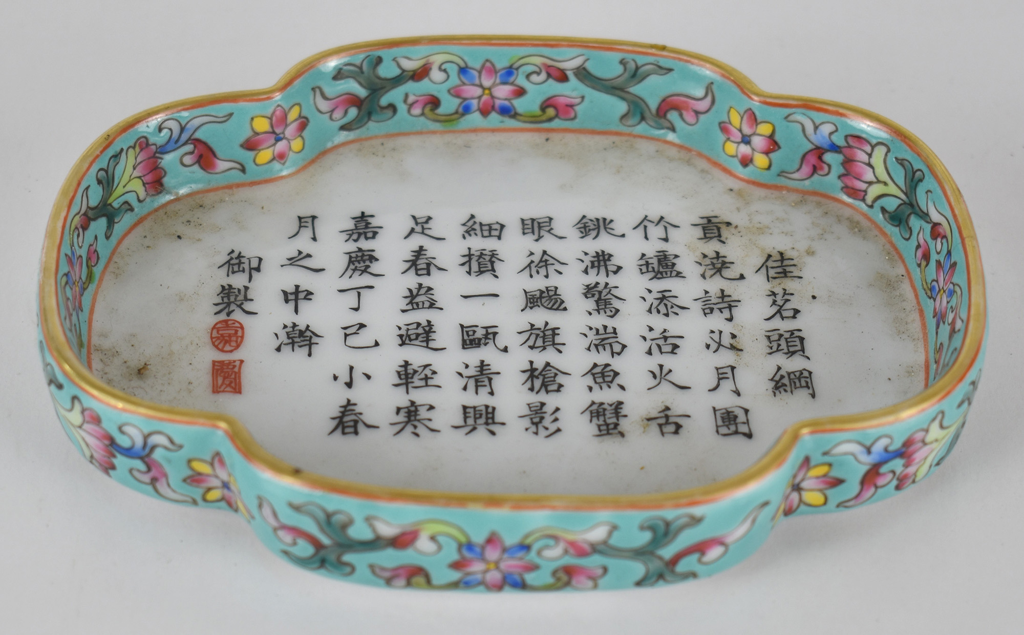 Precedente Lotto 0143 Successivo Casa d'Aste Martini - C.so Cavallotti 76, 18038 Sanremo DALL'ANTICO AL CONTEMPORANEO Sessione unica giovedì 23 ottobre 2025 ore 15:00 (UTC +01:00) CERAMICA Cina piccolo vassoio in porcellana decorato con scrittecm. 15x11 2 h. 2