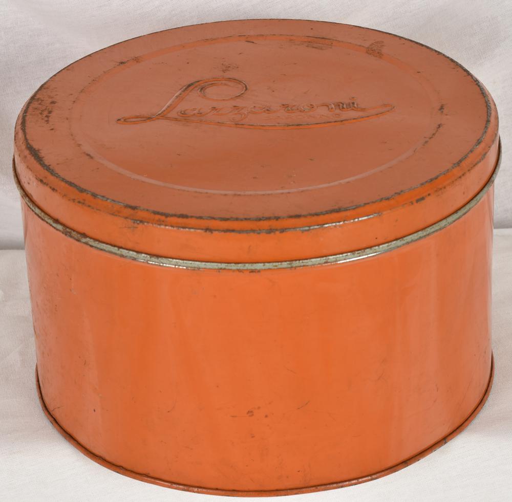 SCATOLA IN LATTA per biscotti marca Lazzaroni Saronno Italia, 1930 ca h cm 12...