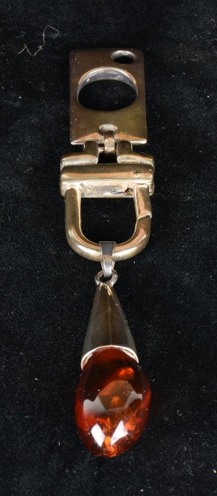 Lotto 90 | PORTACHIAVI in metallo argentato e pendente con pietra a imitazione ambra...
