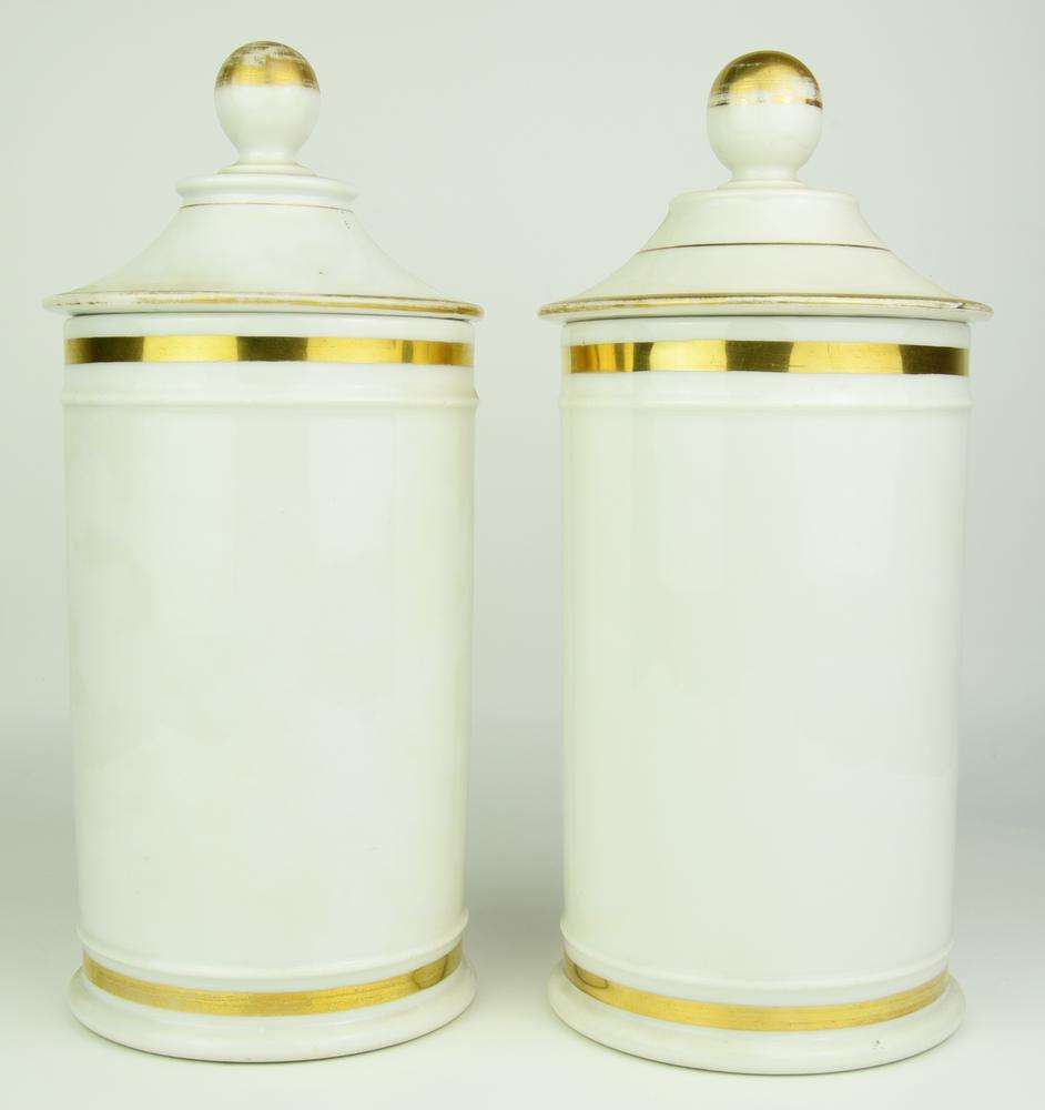 COPPIA DI VASI DA FARMACIA in ceramica con dorature h cm 28, diam max cm 12