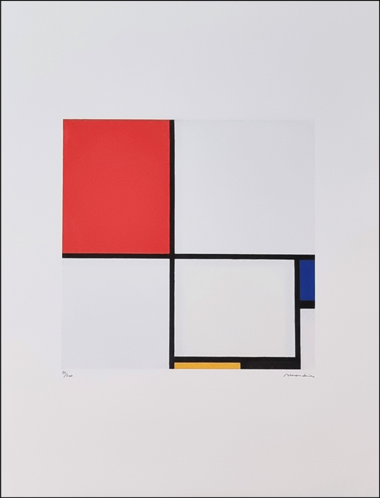 MONDRIAN PIET Paesi Bassi 1872 - New York 1944 "Senza titolo" Riproduzione litografica offset cm 50x66. Firma in stampa sul fronte in basso a destra, tiratura xx/200 e timbro a secco a sinistra. Sul retro ologramma di autenticità.