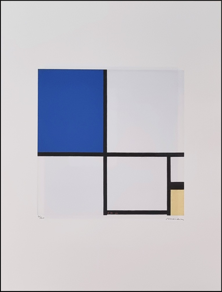 MONDRIAN PIET Paesi Bassi 1872 - New York 1944 "Senza titolo" Riproduzione litografica offset cm 50x66. Firma in stampa sul fronte in basso a destra, tiratura 76/200 e timbro a secco a sinistra. Sul retro ologramma di autenticità.