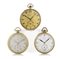 Due casse in oro giallo 18 kt ed una in oro rosa 14 kt. Due quadranti argentati uno con indici e numeri arabi smaltati, uno con numeri arabi applicati, secondi al 6, uno champagne con numeri arabi smaltati e secondi al 6. Movimenti con scappamento ad ancora, carica manuale. Quadranti, casse e movimenti firmati.