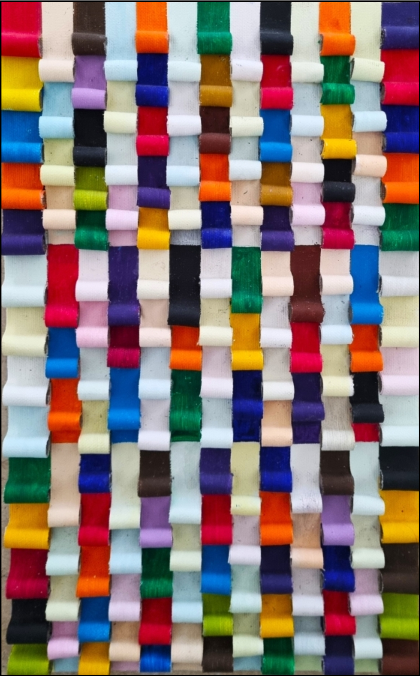 FASANO FRANCESCO Fasano 1966 "Risvolti alternanze" Tele arrotolate e acrilici su legno cm 20x34 del 2016. Firmata al verso, autentica su foto a cura del Maestro.