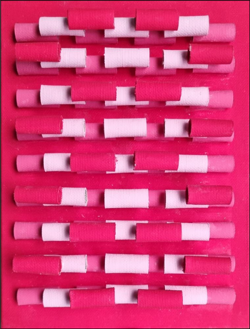 FASANO FRANCESCO Fasano 1966 "Risvolti" Tele arrotolate sovrapposte su pannello cm 15x20 del 2018. Al verso firma, titolo, data, tecnica e misure.