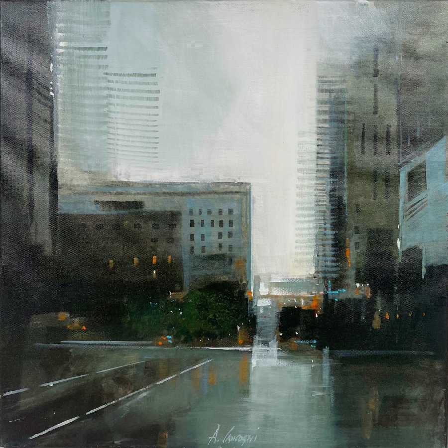 CANCOGNI AGOSTINO Forte dei Marmi 1950 "Città" Olio su tela cm 50x50. Firmato sul fronte in basso al centro. Al verso firmato ed intitolato.