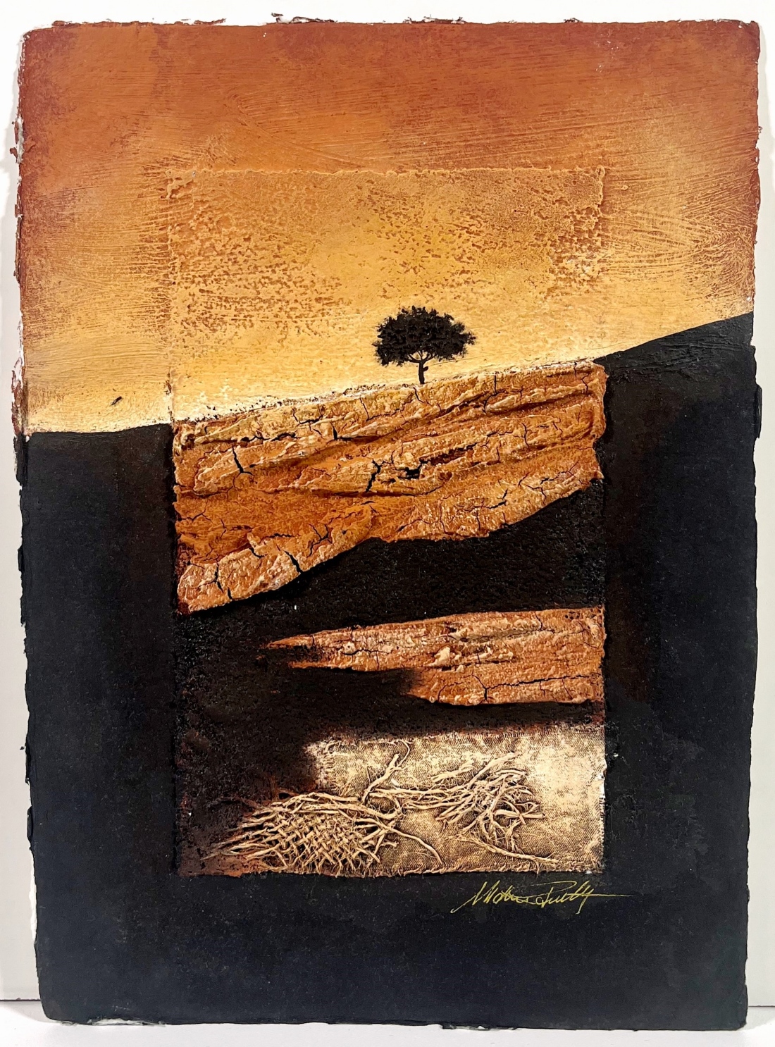 PASCHETTA MARIO Milano 1949 "Senza titolo" Tecnica mista su carta applicata su tavoletta cm 30x40. Firmata sul fronte in basso a destra.