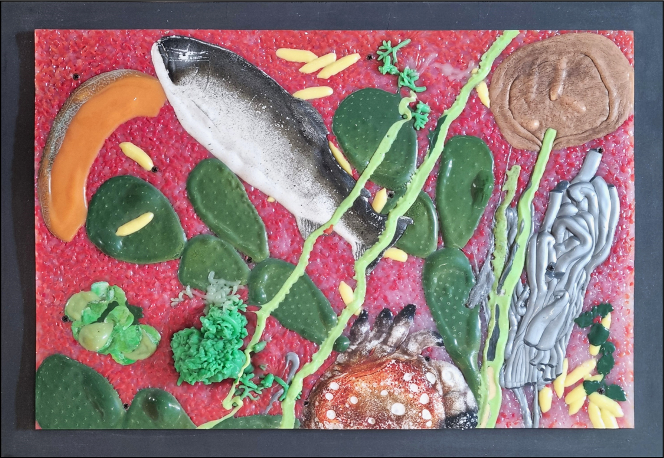 RONDA OMAR Portula 1947 - Biella 2017 "Fusion Genetic" Plastiche fuse ed applicate su legno, cm 63x44,5 del 1990. Al retro etichetta descrittiva con firma dell'Artista per autenticità, timbri e data.