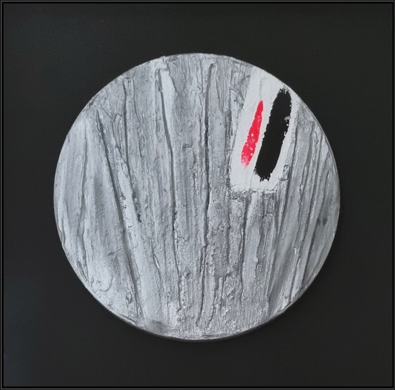 FINZI ENNIO Venezia 1931 "Il verso del colore" Tecnica mista su legno cm 43 di diametro, del 1993. Sul retro firmato e datato. Autentica su foto a cura dell'Artista.