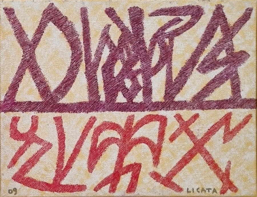 LICATA RICCARDO Torino 1929 - Venezia 2014 "Senza titolo" Olio su tela cm 35x27 del 2009. Firmato sul fronte in basso a destra, datato a sinistra. Autentica su foto a cura del Maestro.