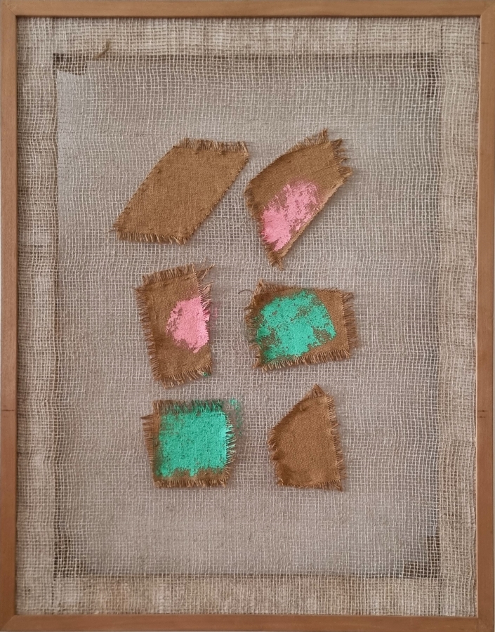 EMBLEMA SALVATORE Terzigno 1929 - 2006 "Senza titolo" Terre colorate su tela di juta cm 70x90 del 2005. Firmata e datata al verso. Certificato di autenticità a cura di Auricchio Raffella Emblema, con numero di archivio.