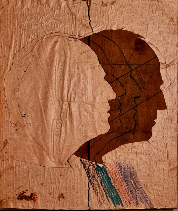 CEROLI MARIO Castel Frentano 1938 "Senza titolo" Tecnica mista su carta e collage su legno cm 48,5x58 del 1995. Firmata sul fronte in basso a sinistra. Lopera è una maquette per il progetto "L'albero della vita - il seme dell'uomo" in Giappone 1995. Provenienza collezione privata. Opera in fase di archiviazione.