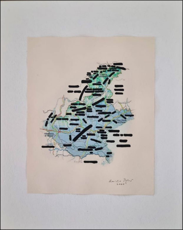 ISGRO' EMILIO Barcellona Pozzo di Gotto 1937 "Verso Villafranca" Tecnica mista su carta cm 22x27 del 2000. Firmata e datata sul fronte in basso a destra. Al verso titolo, tecnica e misure. Autentica su foto a cura del Maestro.