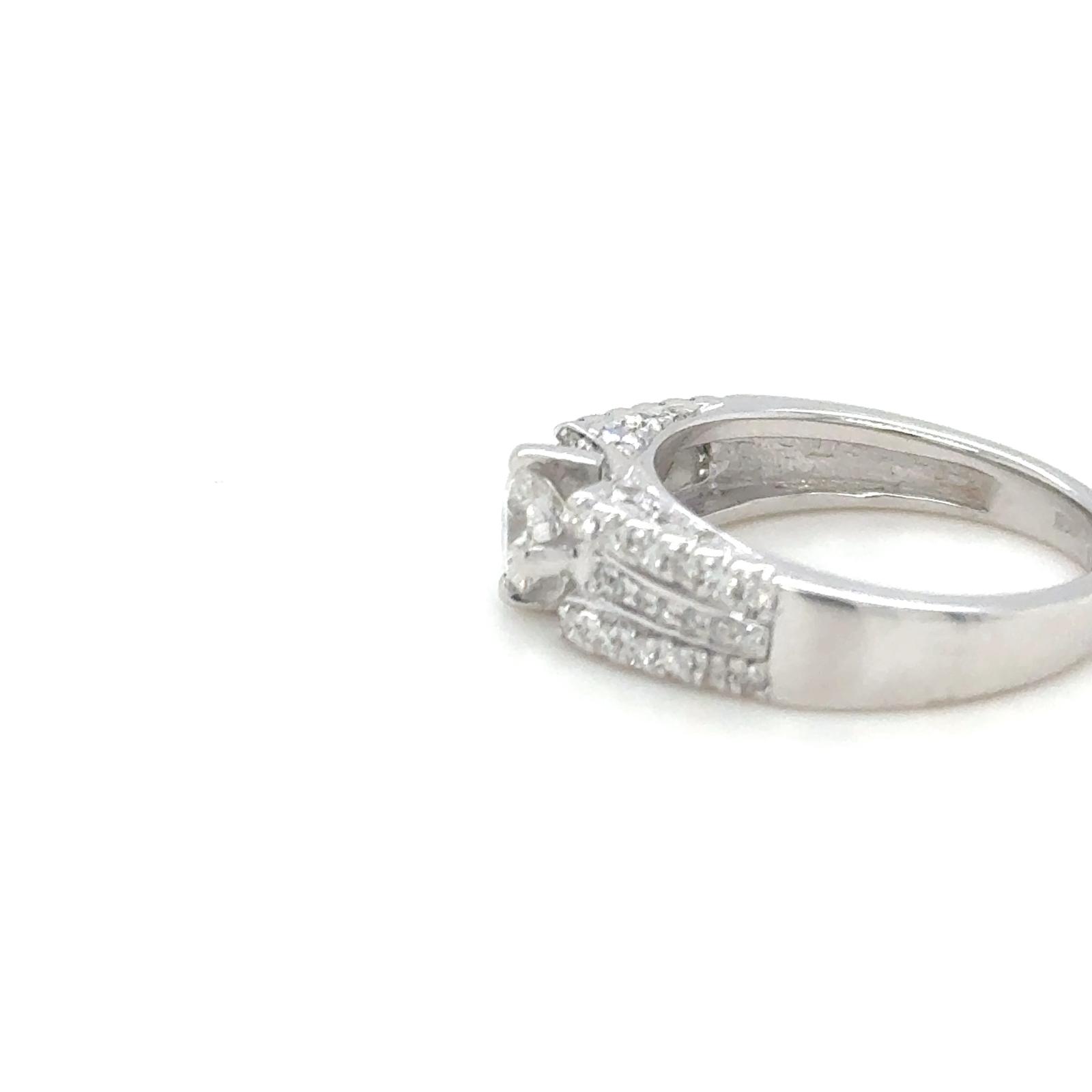 ANELLO IN ORO BIANCO 18k - 4.81 GR CON DIAMANTI : PEITRA CENTRALE BRILLANTE COLORE F VS 1-0.46 CT + BRILLANTI LATERALI D-F VVS-VS 0.54 CT TAGLIA: 6.5 CERTIFICATO LD GR - DH-R768 - COMMISSIONE D’ASTA 25%