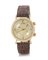 Cassa laminata in oro giallo con doppia corona. Quadrante bicolore argentato e champagne con indici applicati e numeri arabi smaltati, secondi e disco per la sveglia al centro. Movimento a carica manuale. Quadrante, cassa e movimento firmati.