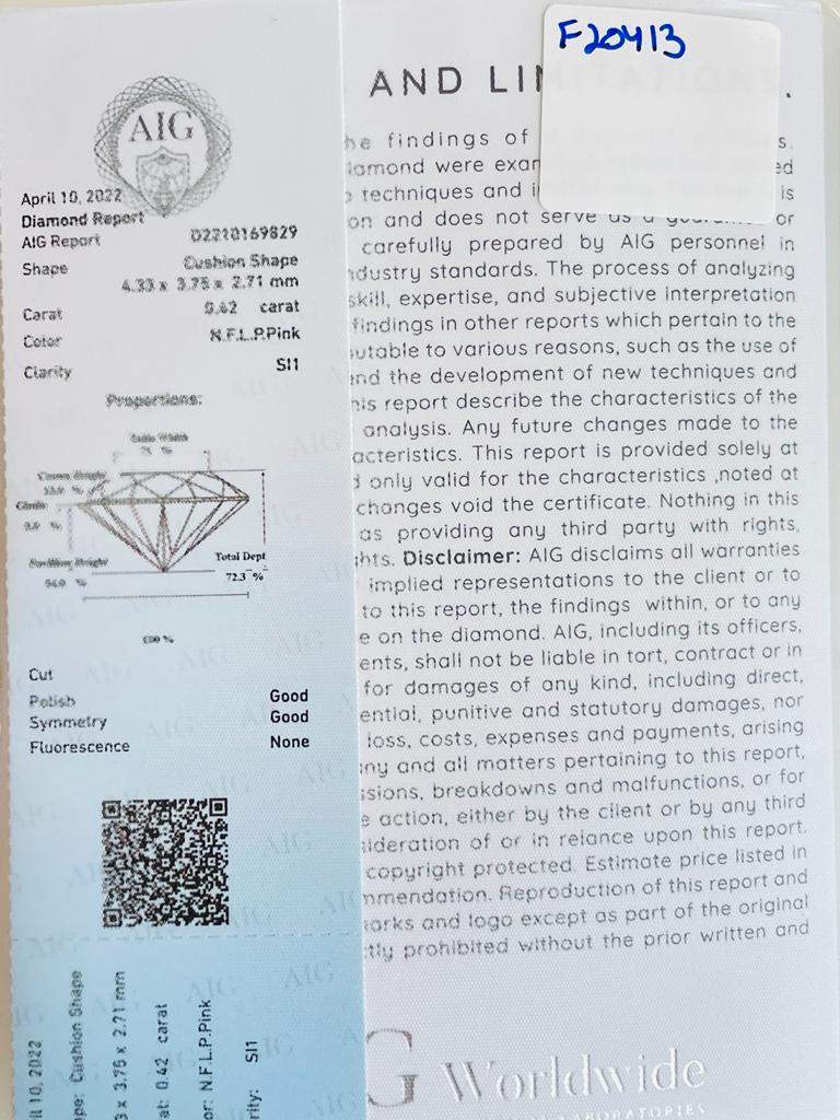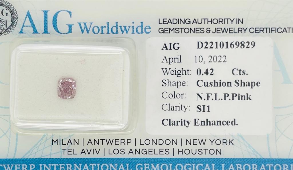 DIAMANTE NATURAL POLISHED 0,42 - COLORE NATURAL FANCY ROSA VIOLA CHIARO - PUREZZA SI1 - CERTIFICATO AIG - F20413 - COMMISSIONE D’ASTA 25%