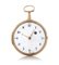 Cassa in oro rosa 18 kt liscia. Quadrante in smalto con numeri arabi. Movimento con scappamento a verga, carica a chiavetta.