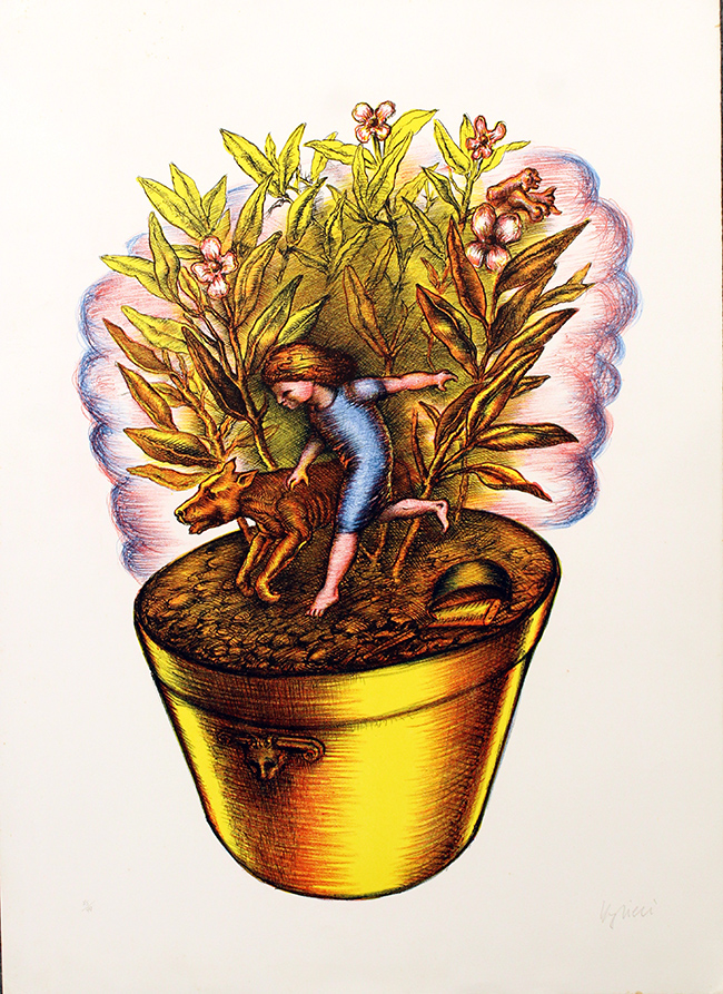 TINO VAGLIERI, "Ricordo d'un giorno di primavera", 1981, litografia su cartoncino, cm 70x50. Al fronte: tiratura in basso a sinistra, esemplare 75/99 e firma in basso a destra. L'opera presenta leggerissima fioritura. Opera senza cornice.