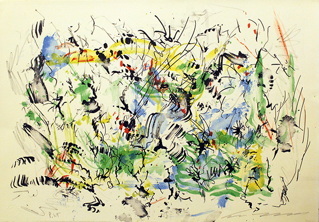 ERNESTO TRECCANI, "Astratto", anni '80, litografia su cartoncino, cm 35x50. Al fronte: timbro e tiratura in basso a sinistra, esemplare PDA e firma in basso a destra. Opera con certificato di provenienza della Daliano Ribani Arte. Opera senza cornice.