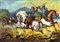 GIOVAN FRANCESCO GONZAGA, "Combattimento di cavalieri sulla costa", anni '90, serigrafia su tela, cm 50x70. Al fronte: tiratura in basso a sinistra, esemplare 102/300 e firma in basso a destra. Al verso: timbro. Opera con certificato di provenienza della Daliano Ribani Arte. Opera senza cornice.