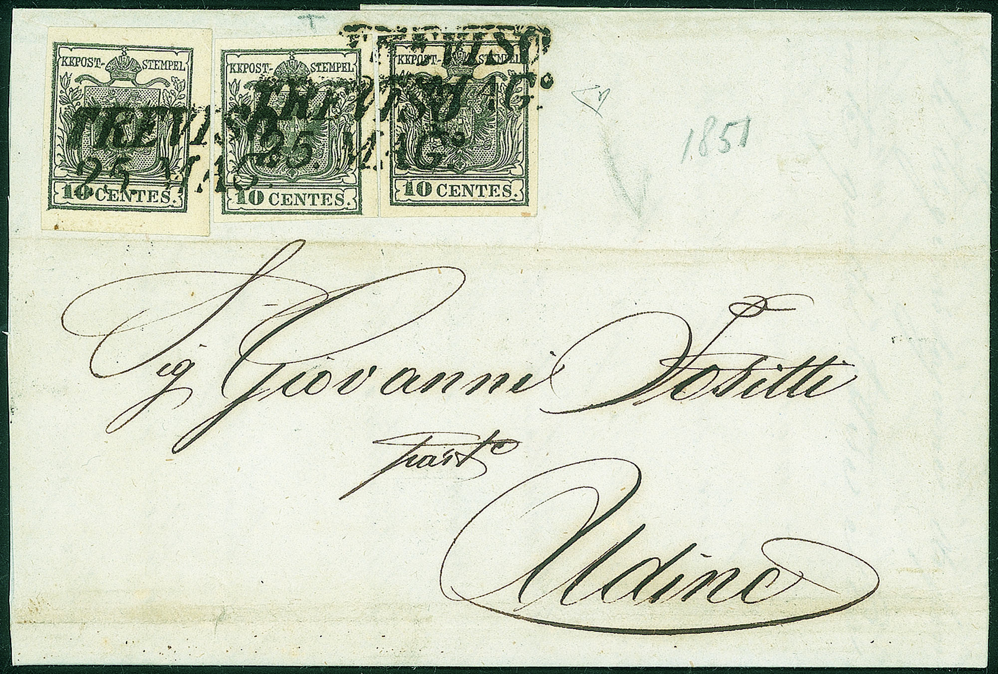 Lotto 2 | Antichi Stati Italiani - Lombardo Veneto - Lettera affrancata con tre 10 cent (2)