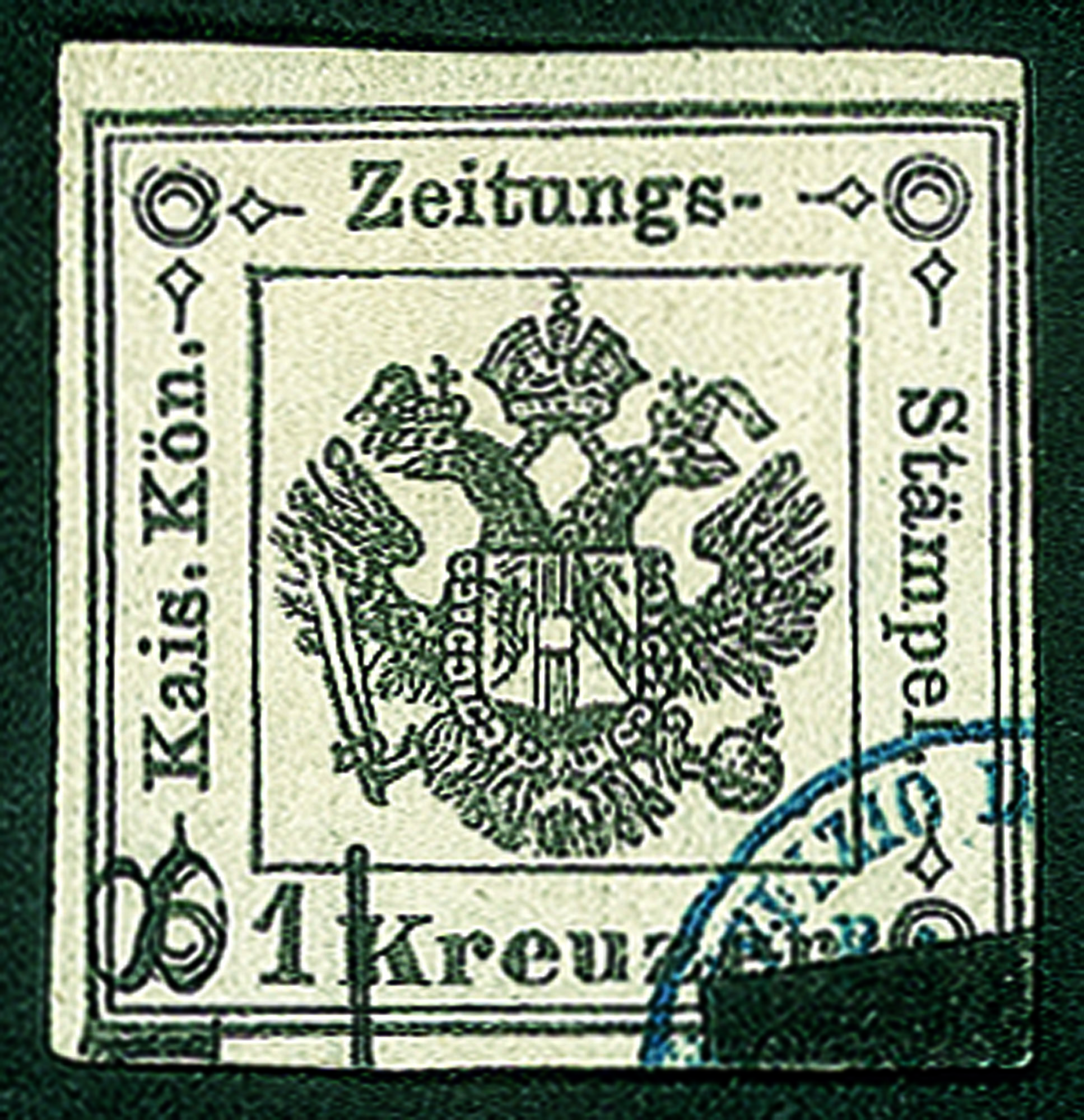 Antichi Stati Italiani - Lombardo Veneto - 1858 - Segnatasse Giornali - 1 kreuzer nero (2)Con annullo a mezzo stampa tipografica del giornale - pochi casi conosciuti - cert. Colla