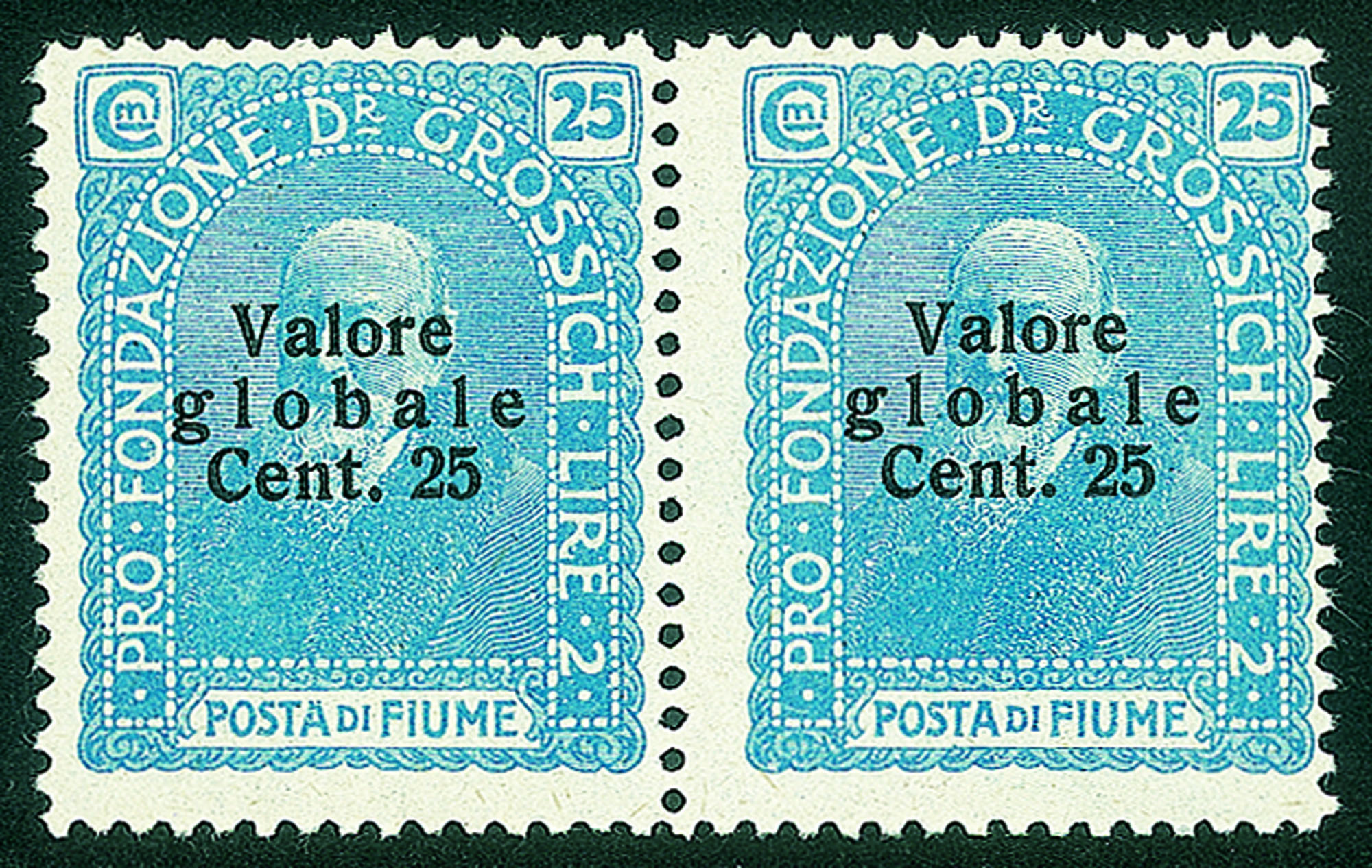 Occupazioni I guerra mondiale - 1920 - 25 cent su 25 Valore Globale (103aa - celeste latteo)Coppia orizzontale di formati diversi - gomma integra (4.000+)