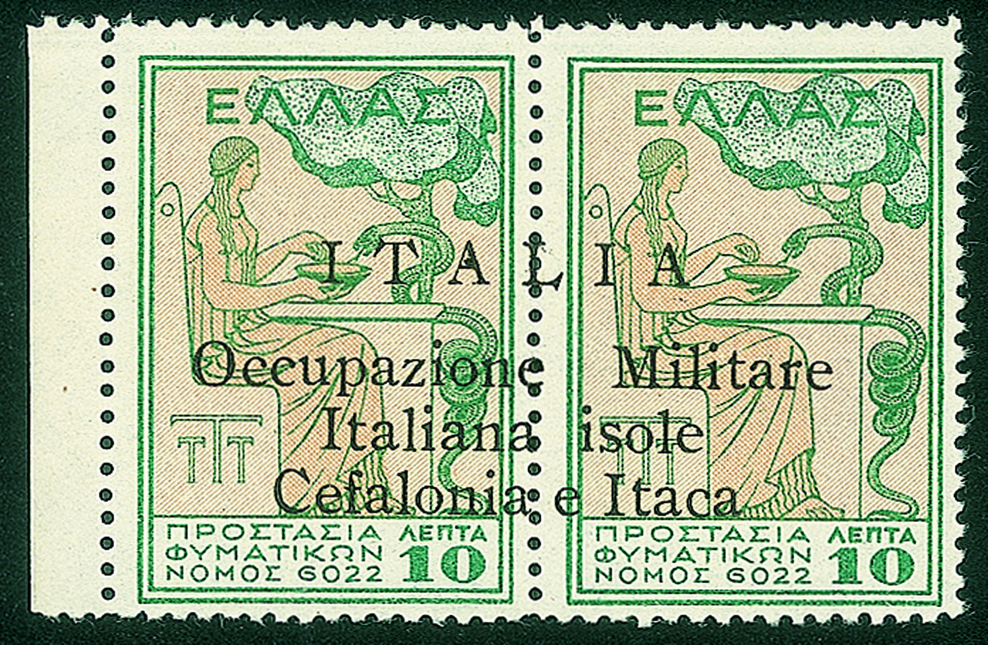 Occupazioni II guerra mondiale - 1941 Esemplari in coppia Beneficenza l.10+10 verde e giallo (32 cat.760)