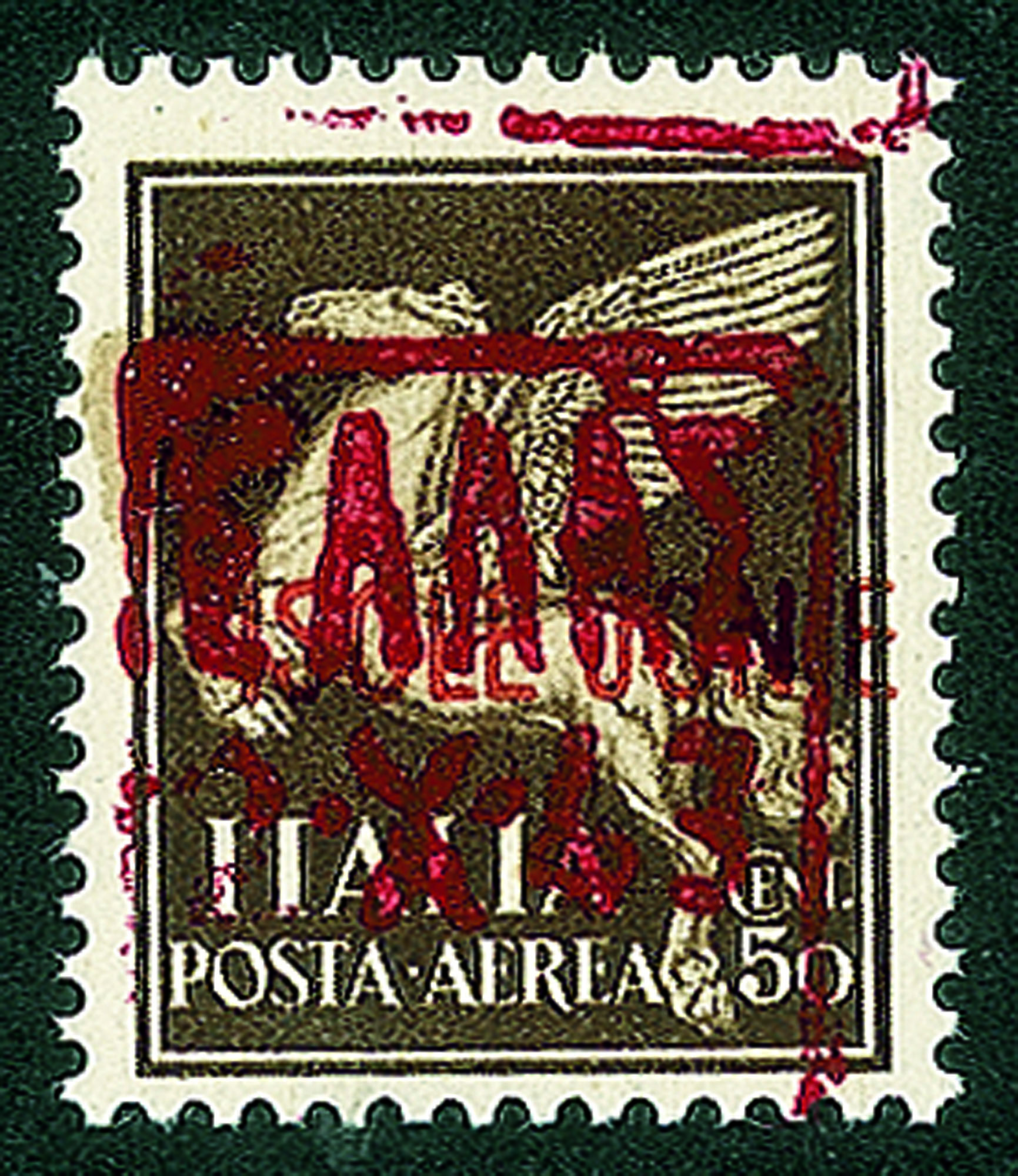 Occupazioni straniere di territori italiani - 1943 - 50 cent (2 varietà ded)Con soprastampa spostata in basso (a cavallo) - gomma integra - non catalogato - cert. Raybaudi