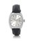 Cassa n. 2135443 tonneau in acciaio satinato con fondello a vite. Quadrante argentato con indici applicati, secondi al centro e data al 3. Movimento a carica automatica. Quadrante, cassa e movimento firmati. Completo di fibbia in acciaio originale.