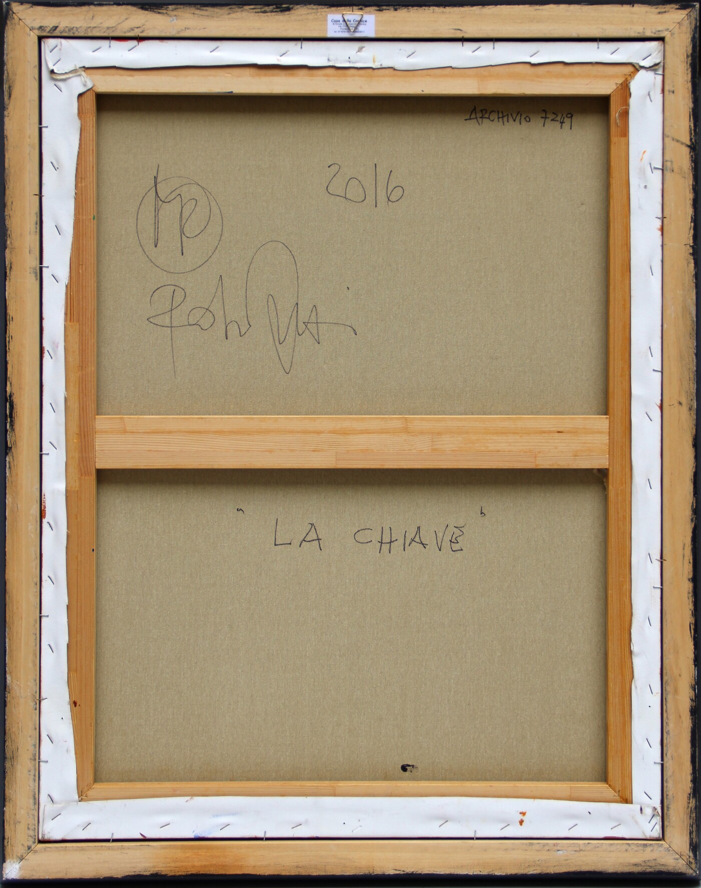 Firma, data, numerazione, titolo "Roberto Miniati, 2016, Archivio 7249, La chiave" (al retro)