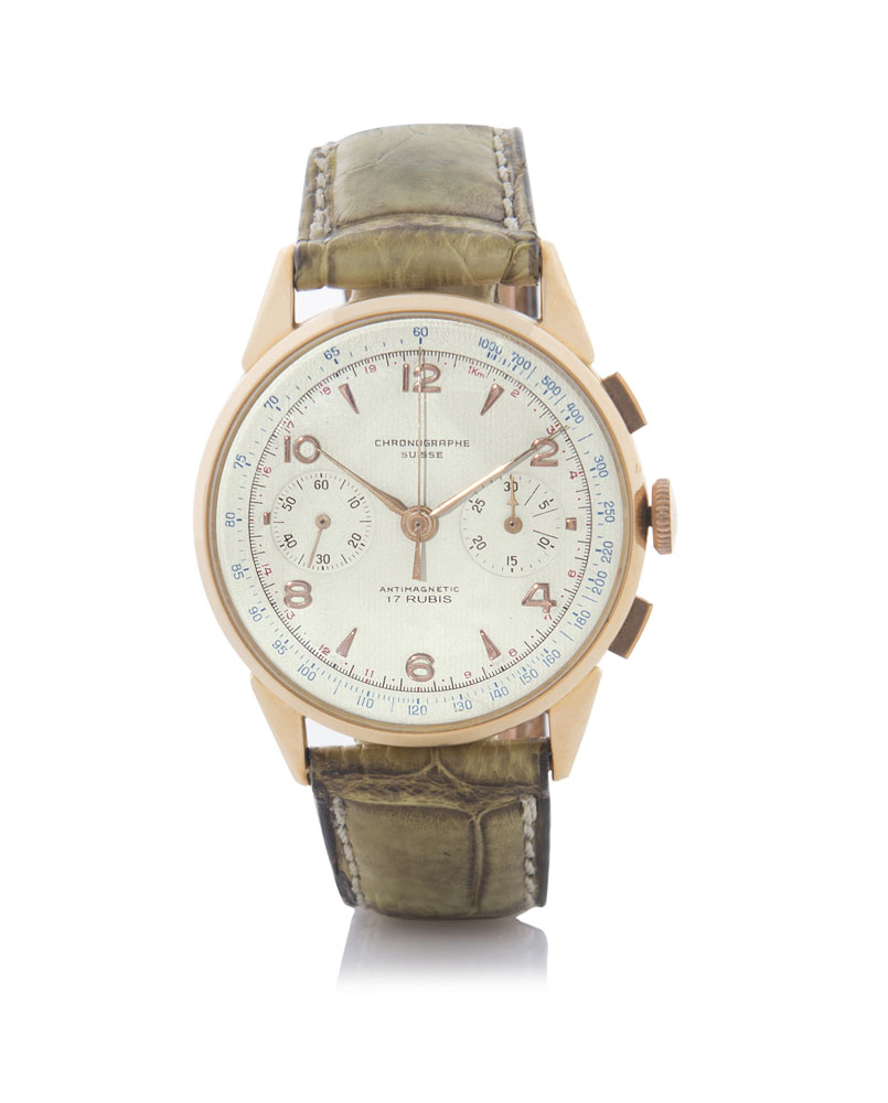 ANONIMO ANONIMO CRONOGRAFO ANNI '50.Cassa in oro giallo 18 kt con pulsanti...