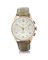 Cassa in oro giallo 18 kt con pulsanti rettangolari. Quadrante argentato con indici e numeri arabi applicati, contatore a 30 minuti, scala tachimetrica e telemetrica periferica. Movimento a carica manuale.