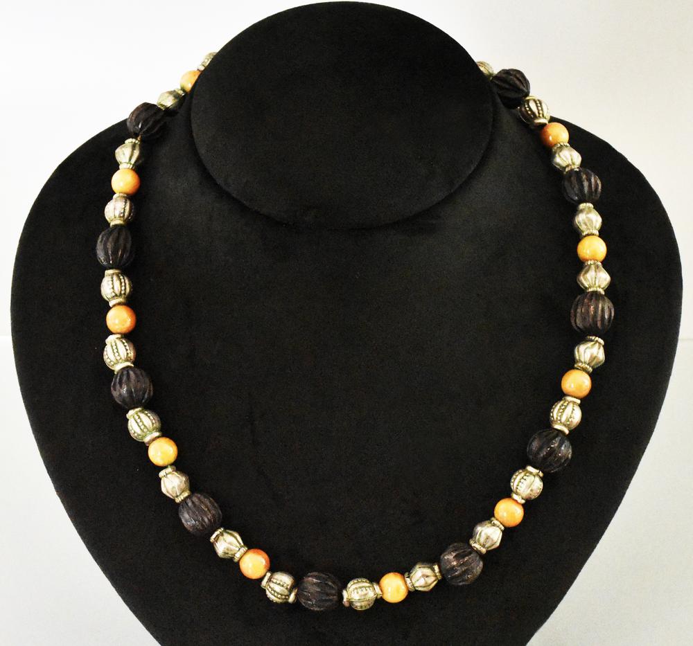 COLLANA ETNICA con pietre dure, argentone e legno lunghezza cm 57