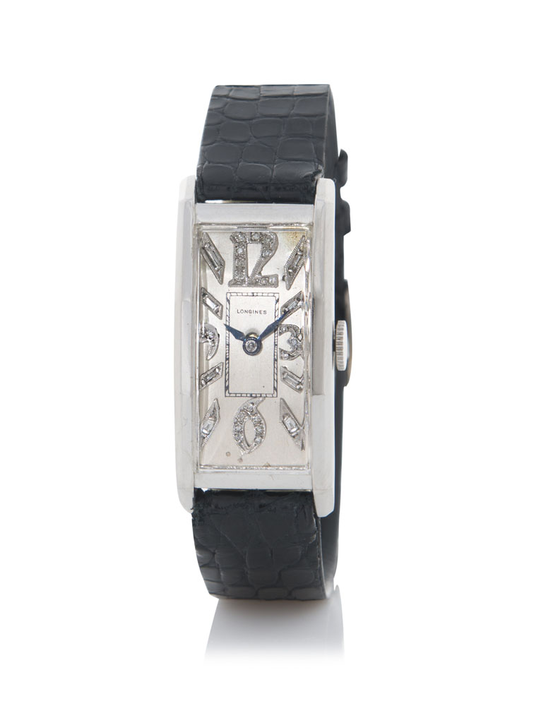LONGINES LONGINES ANNI '40. Cassa rettangolare arcuata in platino. Quadrante...